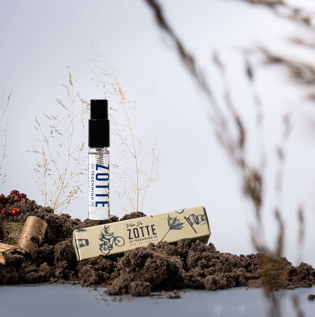 Tegenwind (headwind) as a weather phenomenon does not have a smell of its own. At most it carries scents along from things that cross its path. So in order to capture Tegenwind in a perfume, I needed to translate the feeling of the true Dutch Tegenwind into an olfactory experience. The feeling from this invisible force that turns a five-minute bike ride into an odyssey. The cold air that seeps through your coat, the gusts that slap your face, the sweat on your back, the rain-soaked jeans, the resistance that makes you question why you ever left the house.